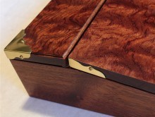 With all of the moving parts and angles on this, I have to say that it is the most challenging thing I have ever built. The leather actually acts as the hinge for the lid to the storage area inside the slope. The angle of the slope is 12-degrees. This proved to be the most challenging because not only did the top need to sit perfectly flat when it was opened, it had to sit flat when it was closed as well. So, the angles are not only on the slope, but also on the writing leaves when closed and on the stops inside the box keeping it level.