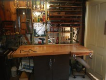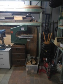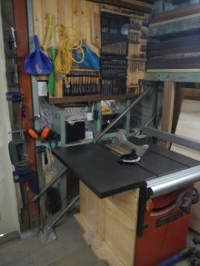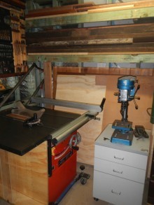 When I started out in woodworking, I grew an interest toward antique hand tools due to their quality and often low price. I now have a large collection of my grandad’s carpentry tools, as well as many garage sale finds and tools from ‘The Traditional Tools Group’ of which I am a member. I bought a 10” table saw thanks to a member on woodworkforums.com for very affordable price which is by far, my favourite machine. I thought some of you may want to know that I store my recently built crosscut sled under the otherwise wasted space of the extension wing. From the same gentleman, I received a small dust extractor which I use with the table saw and bandsaw.