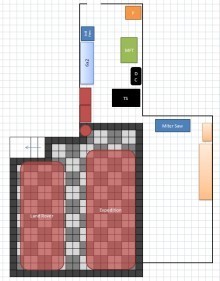 When you first walk in you are in the living room, better known as the assembly area. I keep this 12′x 12′ area relatively free to accommodate larger project assembly. It is also really handy to have a space for plywood breakdown before it hits the table saw.