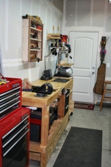 The garage is t-shaped with the shop area directly in front of the middle garage bay and is about 250 sq.ft. Unfortunately I’ve spent most of my time setting up the shop instead of working on any projects. I have done a few simple projects for around the house, but nothing too exciting yet.