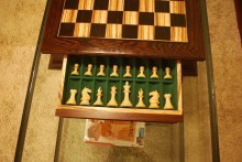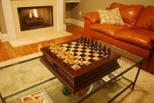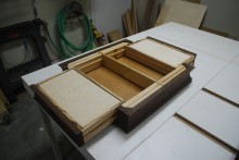 I built this chess board for myself over the course of a year or so (this was my “toy” project so it stayed on the back burner for the duration of the build). I wanted an exotic hardwood board, with a case underneath to store the pieces and raise the playing surface up off the table. I decided on wenge for the case and ebony/zebrawood for the light and dark squares. Originally, I intended to turn my own pieces on a lathe, but to be honest I am not a turner and didn’t want to invest in a lathe and turning tools for what would probably be a one-time project/occasion. I ended up buying the pieces online for about a hundred bucks and was done with it!