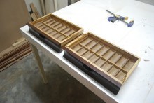 All of the moldings were made on the router table with some specialty bits from Rockler. The drawers are tongue and dado joinery for simplicity and since the drawers will see very light use. I made a my own drawer pulls using scrap ebony, the pulls are mortised into the drawer fronts.