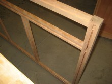 The box is pretty straight forward. You assemble the box with the plywood top and bottom captured in dadoes. The lip for the lid is formed by two dadoes, one on either side of the workpiece, separated by a very thin piece of wood holding the box together. Once the box is assembled and the glue has dried, you cut away the top on the tablesaw. At least that was how it was supposed to go–somehow my two dadoes got spaced a bit too far apart, so I had extra wood left on the lids to cut away. I ended up having to build a jig something like a tenoning jig to hold the lid steady while I trimmed away the remaining wood. Then some work with a hand plane to finish cleaning things up.