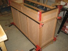 This was the most challenging project I’ve attempted so far. I have a handful of projects under my belt, and each one has been a little more difficult than the previous. We wanted a buffet table to go in our kitchen and we wanted the utility of more storage space as well. I found a few sets of plans and took elements from each one to create this piece. It has 44 mortise and tenon joints, lots of dadoes and 5 dovetailed drawers. I used soft close drawer slides and cabinet door hinges. The offset between the legs and the front face of the cabinet made hinge selection a little tricky, but I was able to find something that works.