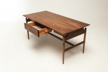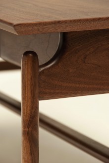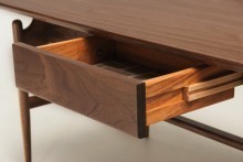 This table was the biggest project during my first year of studying furniture design at Sheridan College in Oakville, Ontario, Canada. The design brief required us to build a table of any kind that had a drawer, was smaller than 6 sq ft, and was under a certain material allowance. The design of this table was appropriated from a Finn Juhl writing table from the 1940s. I was really interested in Danish Modern furniture at the time and was immediately drawn to the simple form and lightness of Juhl’s table.