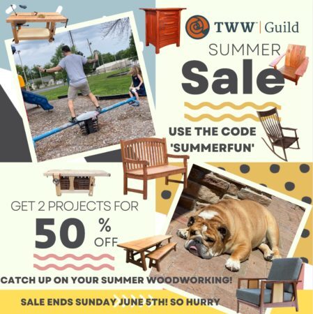 The Summer Sale has begun in the Wood Whisperer Guild and that means it’s time to save…..wait for it…..50%!!! Use the code SUMMERFUN at checkout. Limit two projects per customer. The sale ends Sunday, June 5th!