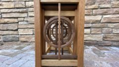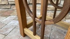 This set of Nesting Tables is a little more delicate and “artistic” than my usual stuff. I spent a lot of time consulting with two design-savvy friends in hopes of coming up with something that was visually compelling when nested together as well as when separated. So thanks to John Funk and Brian Benham for their assistance. These tables are somewhat delicate with regard to the side designs but overall they’re pretty sturdy. Mortise and tenon joints hold everything together and the sides offered some fun opportunities in segmented ring construction.
