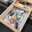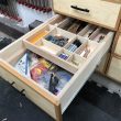 Most drawers in the shop include a lot of wasted space. Even at only 6″ deep, most of my drawers are only at half capacity because nothing in there sits higher than 3″. Taking some inspiration from my kitchen, I decided to retro-fit an existing drawer with a sliding tray system. It requires a little bit of surgery on the drawer but in the end, doubling the capacity makes it totally worth the effort.