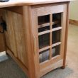 The piece is done in cherry with General Finishes “High Performance” waterborne finish. I applied 3 coats with a brush, and it turned out well. This was a real test for me to a) duplicate a joint from the internet, and b) design on the fly. It measures a little under 4 feet square, and it took about 60 hours to complete.