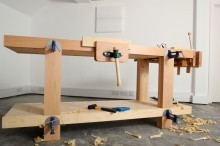 Made from a mix of budget redwood and steamed beech, this bench hopes to fuse an economical build spec, good transportability and a recognisable shape. Finished in Osmo transparent wax oil, the user will soon find out if this is a useful design or a waste of clamps!