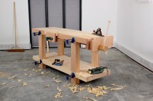This workbench was designed to have a good weight and surface area while still allowing the user to continually transport it in a small car. The workbench remains portable as it is not glued but held together by four sash bar clamps.