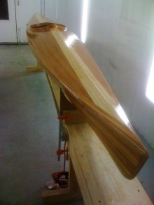 The project was put on hold until March 2011. More epoxy was applied; the coaming for the cockpit installed; and deck fittings designed, manufactured, and installed. Then more sanding and epoxy. The almost finished boat was displayed in May at the Beaufort Wooden Boat Show, winning an award for the “Best Up-and-Coming Boatbuilder”.