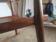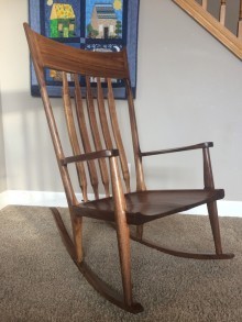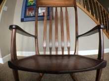 As for finishes, we used the traditional Maloof Oil/Poly and Oil/Wax, 3 coats of each with some light sanding in-between and that is it. It took us two months to get the design and the first one done, but we can now produce two a week.