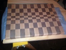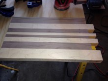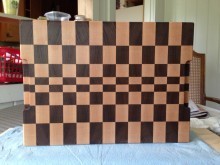 I have been watching The Wood Whisperer for a couple of years, and decided last year that I wanted to do some woodworking. I also wanted to give my mom something for Mother’s Day, so I acquired the bare minimum tools needed to follow Marc’s cutting board episode and managed to find a little bit of hardwood to begin the project. I wanted to use Purple Heart and Maple, but my Purple Heart board was not quite wide enough to follow the directions exactly, so I went with Walnut and Hard Maple. I soon realized that I did not have 8/4 stock like Marc suggested (I realized this after I watched Episode 4 – A Lumbering Feeling), so I downloaded CBdesigner and went to work to figure out how I could make a board of the same dimensions with wood that was only 1 ½” thick.
