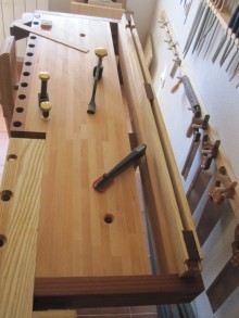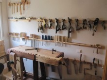 The workbench is hand plane finished without any sandpaper. I have a small space where I teach hand tool techniques and furniture making without power tools or other machinery. Just arts and crafts. My workshop is called Aula Flamingo.