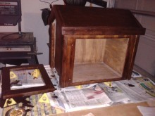 I stained the entire library and applied 2 coats of 50/50 spar varnish/mineral spirits to hopefully protect it from the elements.