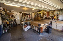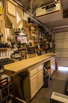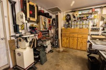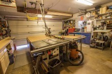 I am now a full time woodworker who has built a very user friendly garage shop for myself. I have a space which is 19′x21’. My main shop tools include a Delta Hybrid Saw with a very super cool tools inspired fence, and a Woodpecker router lift systems with Freud Fence. I have a Jet bandsaw, Porter Cable Drill Press, 12” Dewalt Mitersaw station, Performax 16/32 Drum Sander, Mini Lathe, Worksharp 3000, Ridgid 6” Joiner, 12” Jet Planer, Jet mortise machine, Delta scroll saw, Lincoln Welder, and a horizontal bandsaw. I have also built some shop helpers, like a horizontal mortise which can cut mortises to fit Festool domino tenons, and a moxon vise for dovetail work. My main assembly table, which is also my outfeed table, acts like a MFT table with 20mm holes 4” on center. It also has flip up wings to give me a larger working surface.