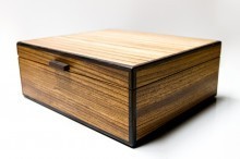 Watching the “Humidor Build” on the Guild site, I decided I wanted to make a keepsake box as I didn’t know anybody who smoked cigars. I made some simple changes to the way the box was constructed. I started with the sides. I milled Zebrawood from 3/4″ thick to 1/2″ thick and learned that Zebrawood doesn’t like to be planed with a benchtop planer. But I got it rough thickness that way and then planed them with my #4 bench plane. They were put together with rabbet joints and I made rabbets for the top and bottom panels. For the top and bottom panels, I used plywood veneered with Zebrawood. Then I used my Box Joint Blade set at 1/4″ to cut the edges, and then apply the Wenge trim. Initially I tried doing a 3-way miter on the corners of the trim, but that proved a little too complicated and I couldn’t get it perfect. So I went with just the top and bottom edges mitered and the side edges cut flat and butted up to those.