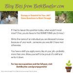 A gratefulness exercise can be one way to reframe our thinking. So, I’m providing you a personal reflection guide today. Get by yourself for a few minutes and ask yourself these questions (I’m focusing primarily on readjusting our attitude toward our professional life, but you can use these questions in a personal way as well.)