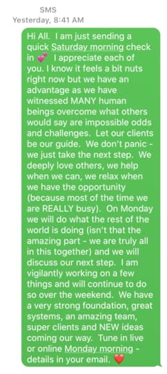 Please note the most recent correspondences are at the top and I will keep this updated in this way over the next little while. As you also know things are moving quickly. Lots of new information every day. The written, as well as verbal communication, between us and our clients has been important – but I also know that too frequent can add to the feelings of overwhelm.