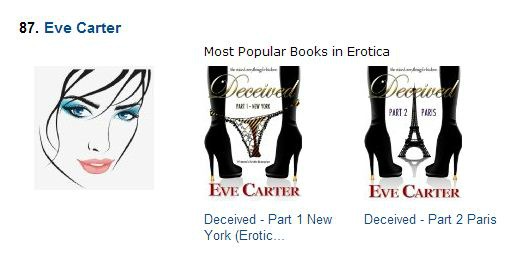 So excited to see this morning that I am now a Top 100 Erotica writer on Amazon. Yay!!You can still get your copy of Deceived 1 and 2 on sale for only 99 cents each the rest of the week.