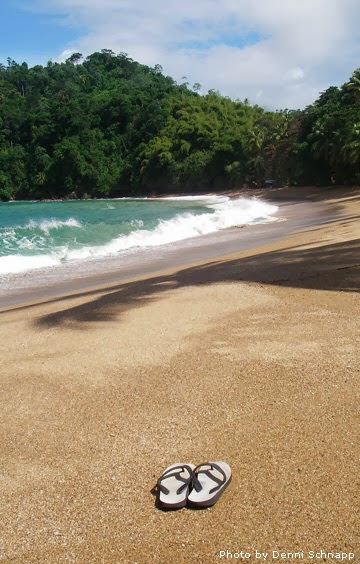Englishman's Bay, Tobago by Denni SchnappMy Isla Tortuga is a large island, uninhabited except by parrots and monkeys, densely forested, with pristine white beaches, waterfalls and rivers, and almost completely encircled by a protective coral reef.