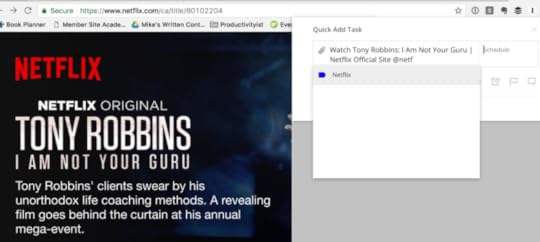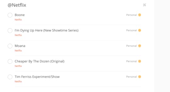 I use the Todoist web clipper to quickly capture shows that are on Netflix that I find on the website What’s New on Netflix. I check this website out once per week as it is updated daily and reveals what Netflix has added to its catalog over time.