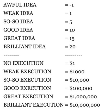 In order to know how much an idea is worth, you have to multiply it with the level of execution.