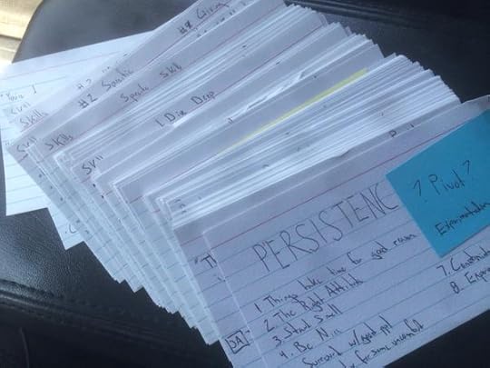 I’m currently writing a book about the themes of success and didn’t know how to organize it. My first attempt was with Ryan Holiday’s notecard system, which works like this: write down anything you might include on a notecard. From single words to big ideas – everything gets a notecard. Then, arrange the notecards and write. It’s that simple.