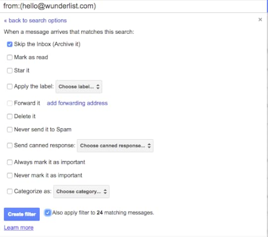 Once you’ve have set all the necessary options, click the “Create filter” button and you’re set! From now on, messages from that particular sender will no longer be landing in your inbox.