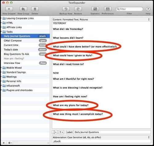 Unload your mind first; that'll eliminate the wrong stuff. Then you can load your day up with the right stuff.