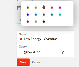 The filters I use are simple and help direct my work with as little friction as possible. The ones I’m using most are as follows (Note: The query formulas are in parentheses):