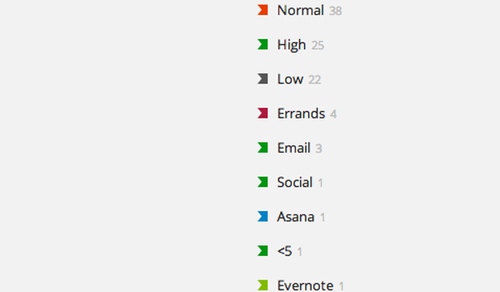 By filtering out by labels, I can see what labels are being used regularly and which ones aren't. I can also see how many low energy tasks and high energy tasks I'm accomplishing by project.