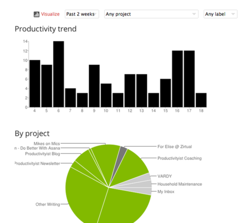 The great thing about using the graphical view in Todoist's review process is that you can get as granular as you want. You can view labels in all projects, all labels in one project, or a specific label in a specific project. You can really define what views enable you to get the most out of the regular reviewing you should be doing. There's real power in having that kind of flexibility.