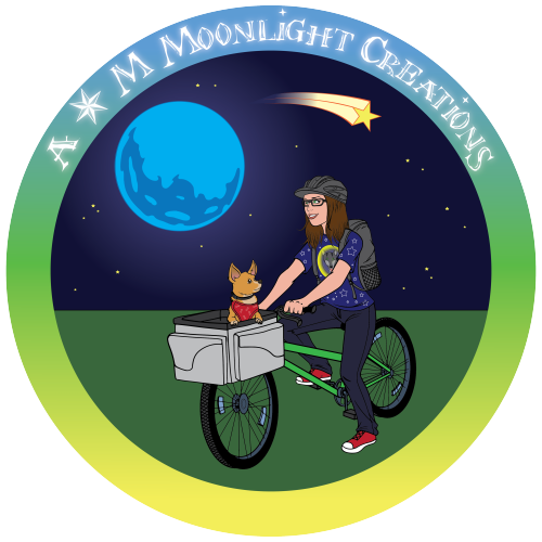 As you can see, I have a new company logo! It was a long, frustrating process coming up with an idea that I felt truly represented my company and finding the right artist to bring my design to life. Taco, my biggest inspiration and company mascot, is the featured animal in my logo. The moon, animals, magic, and mental health awareness are all represented. For those who don’t know, the bike is green because green is the color for mental health awareness. The backpack was added as it is meant to be carrying a small camera, art supplies, and writing supplies. While none of these things are shown so only I know what’s in the backpack, it was the only way I could think of to include these things as making sure animals, magic, the moon, and mental health awareness along with art, photography, and writing was incorporated in the design somehow was impossible without leaving a few things out.