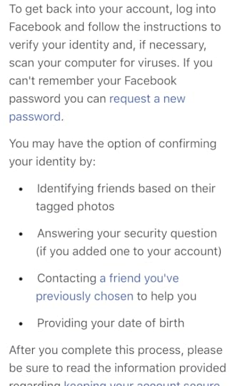 I went on google. Did a search for “facebook locked me out of my own account”. You’d be surprised at the number of forums inundated with issues like mine. To name a few: