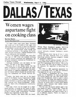 It may turn out that it is just a labeling issue, that the warning needs to be broader. People still smoke, but they smoke knowing the consequences. The difference here is that people have not understood the consequences " "How many people even know that the FDA has attached a limit to aspartame consumption?" asked James Wagoner. Legislative aide to Sen. Howard Metzenbaum, (Ohio). (Bowing to industry pressure, in a previously unprecented move, FDA also doubled their normal Allowed Daily Intake for aspartame.)