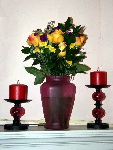 Among yesterday's surprises was a huge box from Pro-Flowers. My oldest, his youngest daughter and her (we think) intended sent me the most glorious bunch of flowers. What a delightful surprise. I got them arranged and on the mantel where I can see them. See what you think. I was thrilled to death.