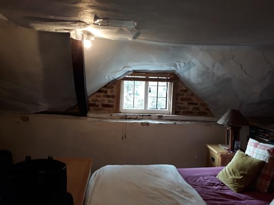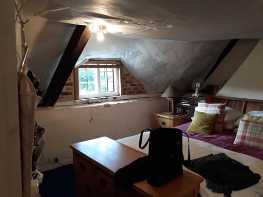 Well the first thing that struck me was its size, and how Mary and her five children fitted into two bedrooms. The ceiling beams on which her cousin and patron George Matcham hit his head (in my book) isn’t quite as low as I had claimed, but the stairs leading to the upper floor were every bit as steep and uneven as I had been led to believe. Like all old cottages the windows are small (see below), so the place is dark, as I had correctly imagined.
