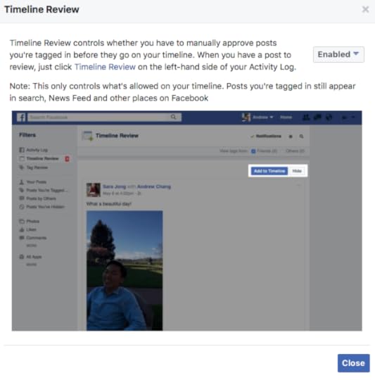 While you’re reviewing your settings, be sure to also review the areas under Blocking and Notifications. Under Timeline and Tagging: