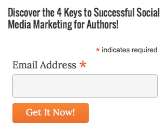 You’ll find the first in the right-hand column. The call to action for a PDF on the four keys to successful social media marketing for authors will add you to my blogging email list. Here’s the call to action: