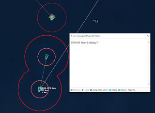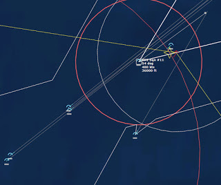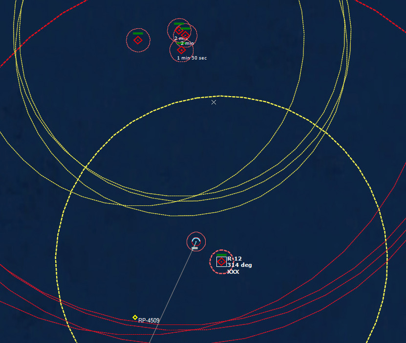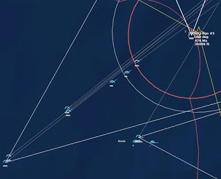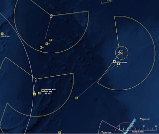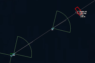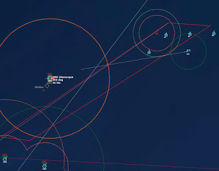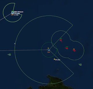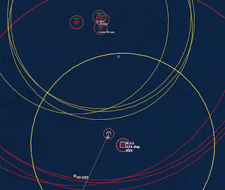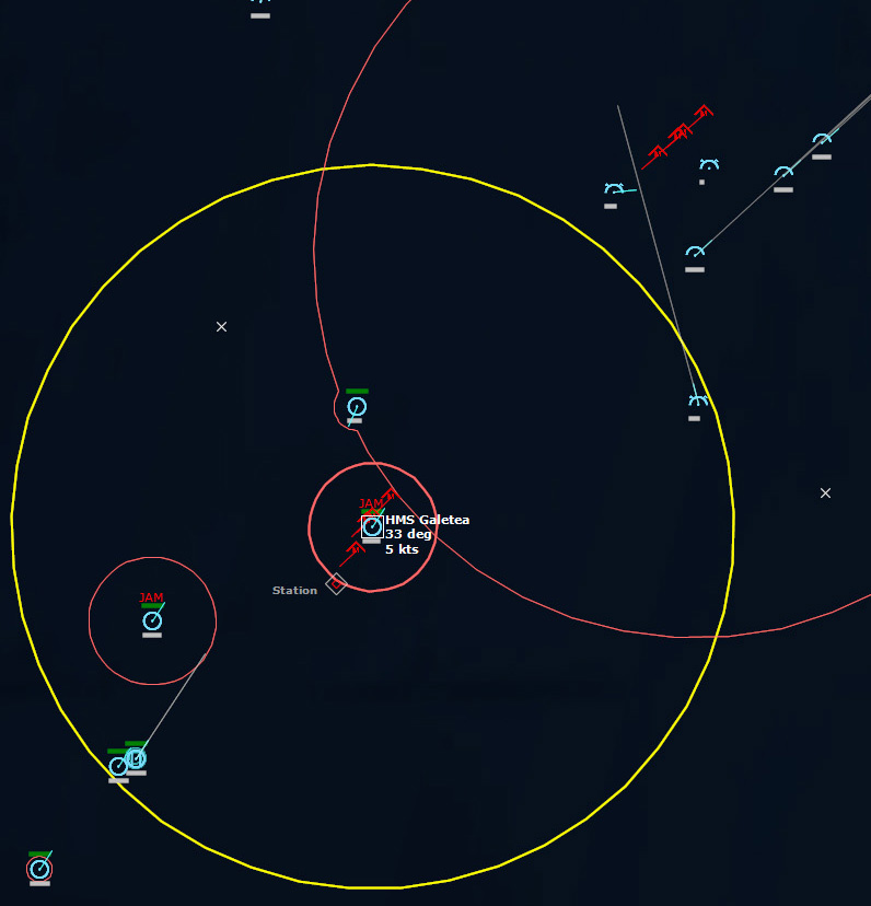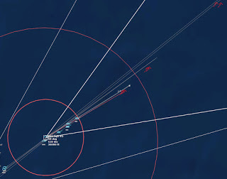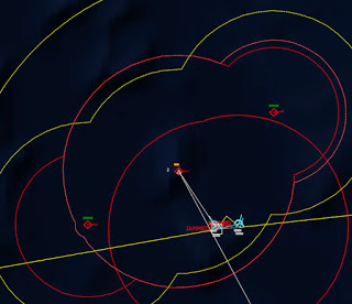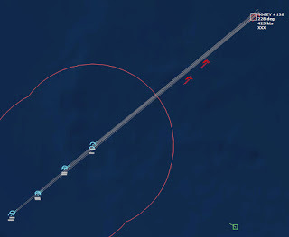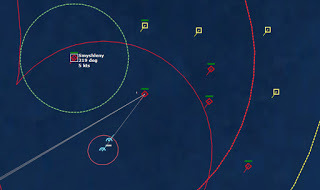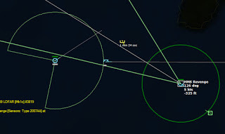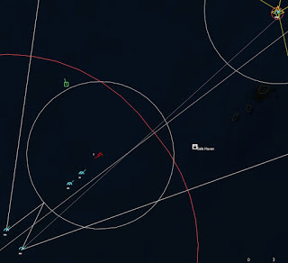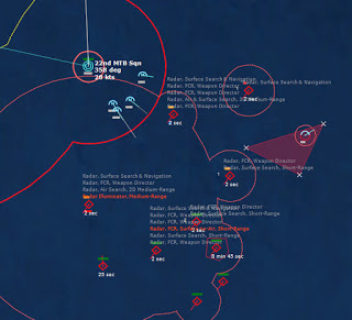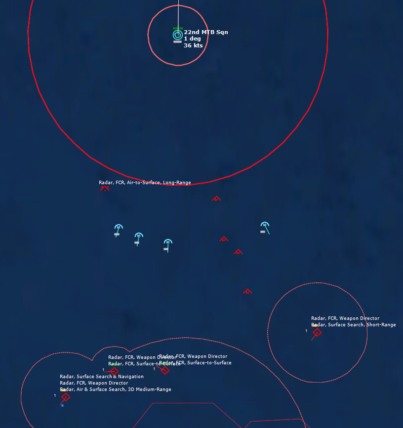 HMCS Algonquin 224346Z The Bogeys are getting too close for comfort, and are approaching the groups. Time to declare them hostile. The bad news is, both bogeys are flying at 36,000 ft, which is above the range of the Algonquin’s Sea Sparrows. Bogey 28 flies by the Lubeck and continues on, while Bogey 27 flies over the USS Mispillion, then the Lubeck, and continues to circle the group.