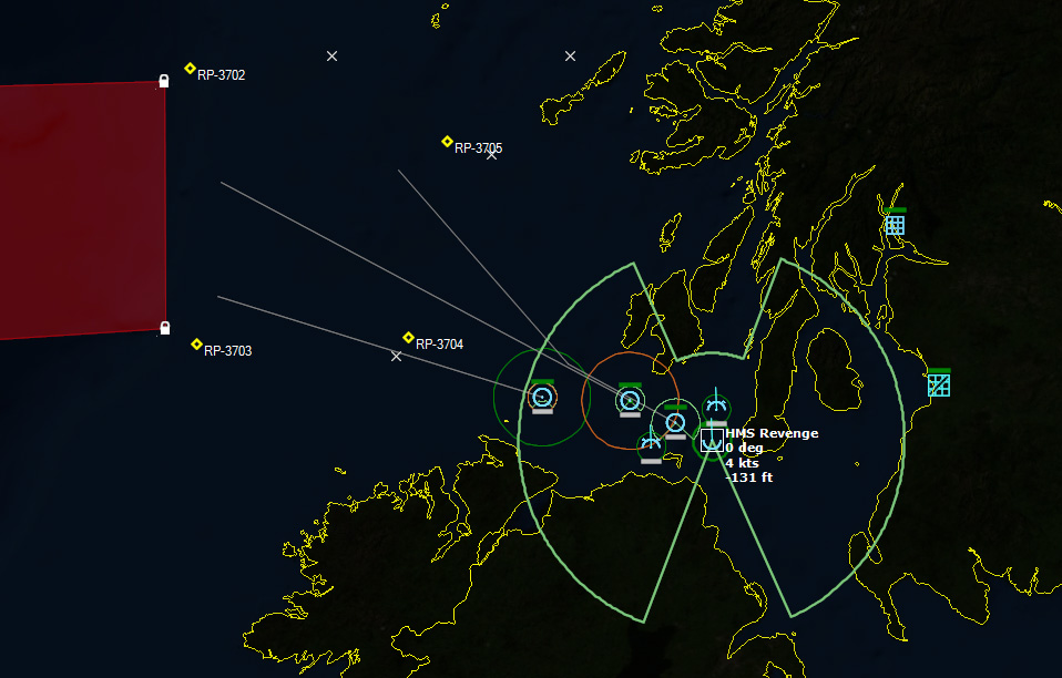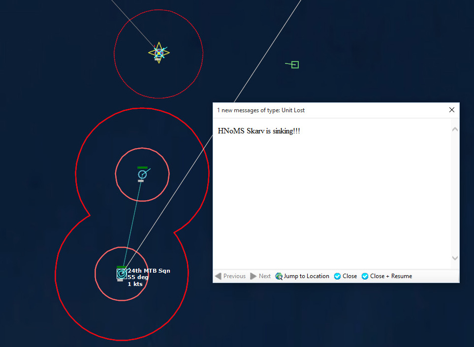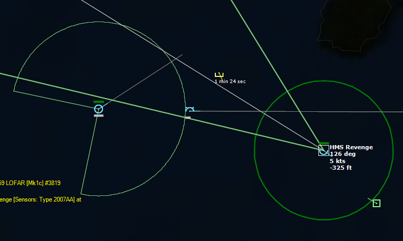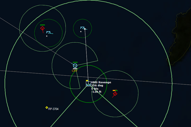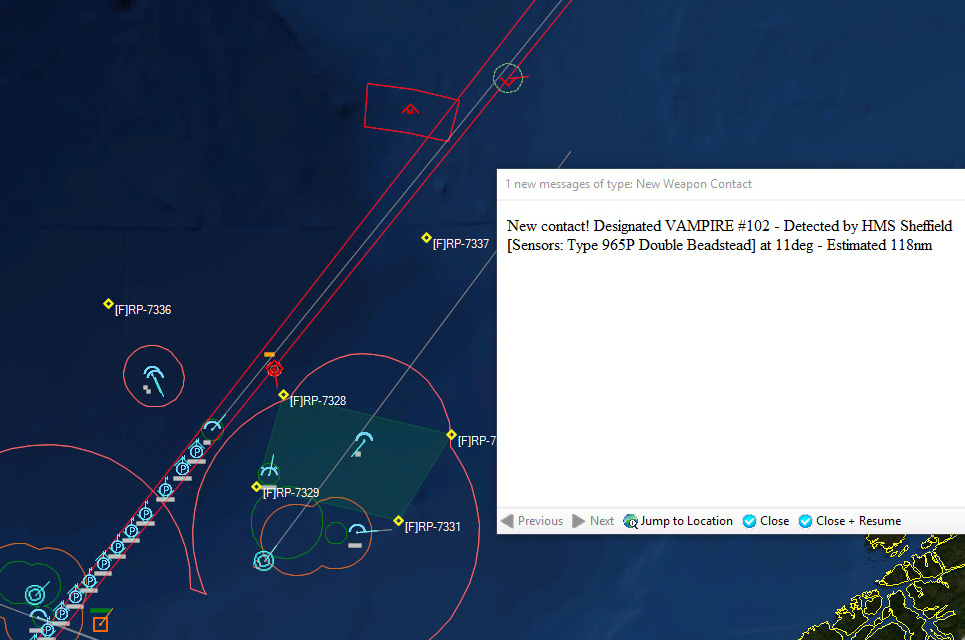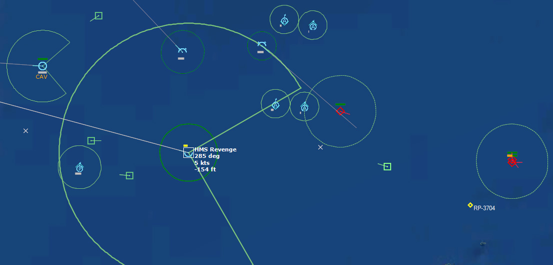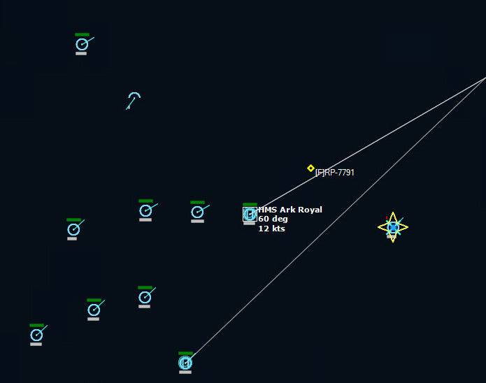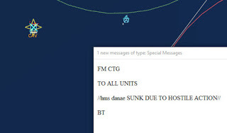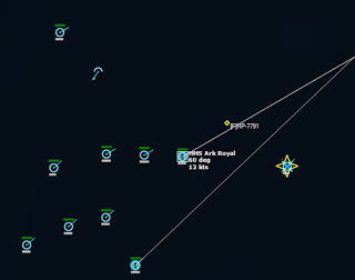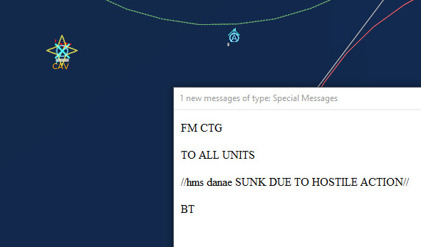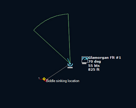 HMS Devonshire is sunk202229Z Contact! Biddle Det #1 detects a sub with its dipping sonar. It monitors the sub while 824 Sqn #3 charges into attack. The sub is currently making a beeline towards Ark Royal.
