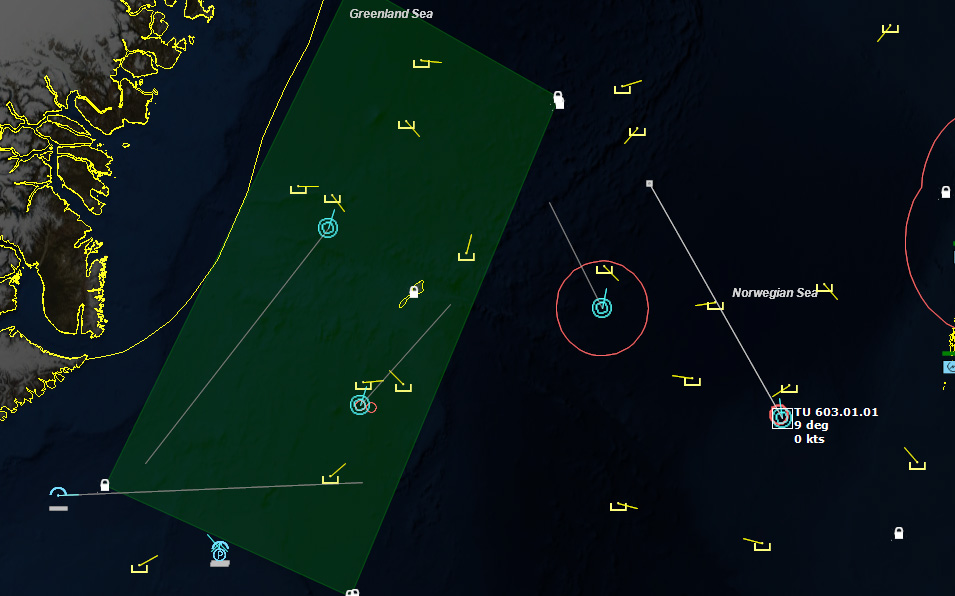 August 7, 1975, 213000Z The first thing to do is set up patrols. Patrol Area 1 is a rectangular area in the Greenland Sea that encompasses Jan Mayen. P-3 Orions and a Nimrod out of Keflavik would patrol it from the air, while TU 603.01.03 and 04 would patrol it by sea.