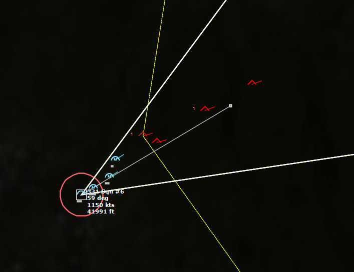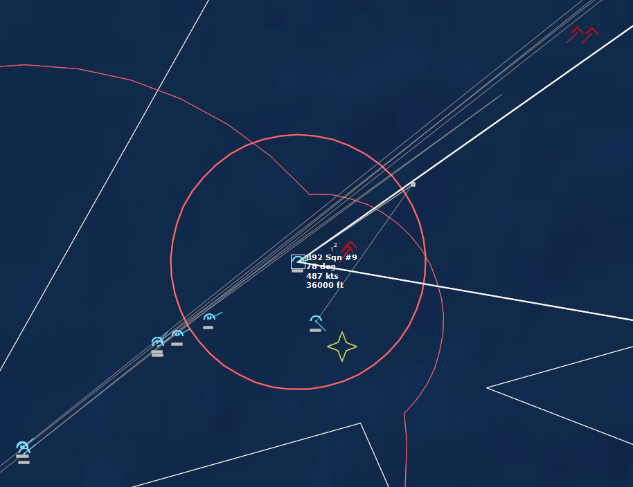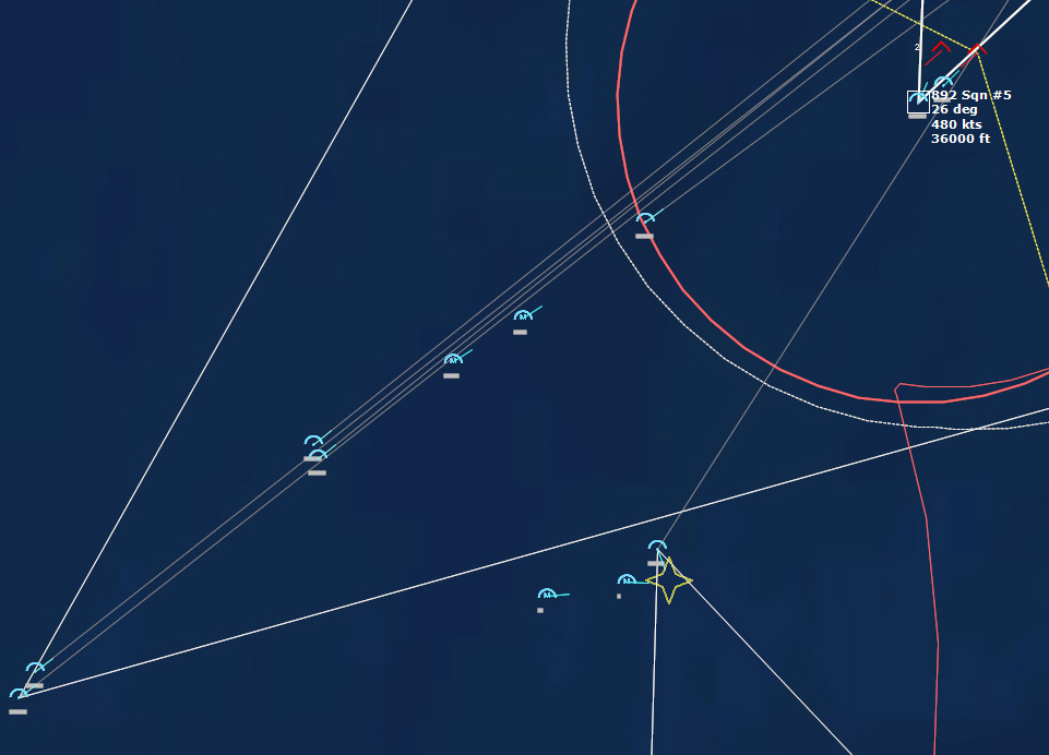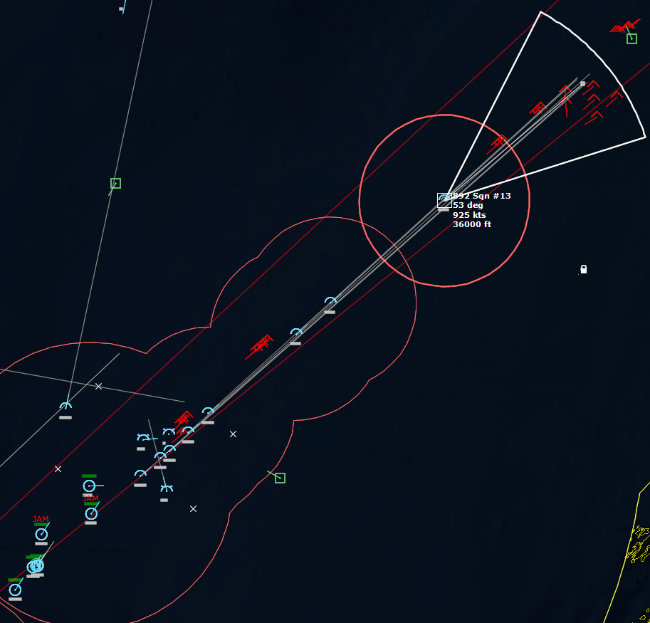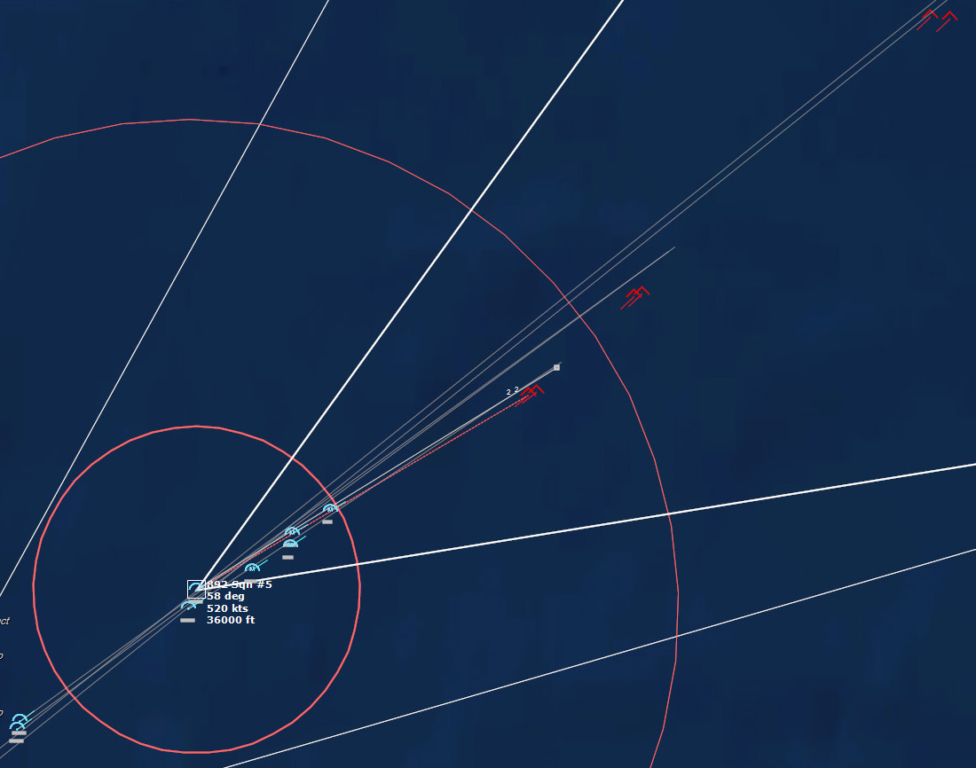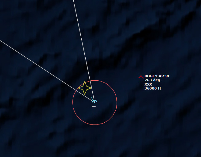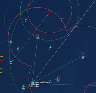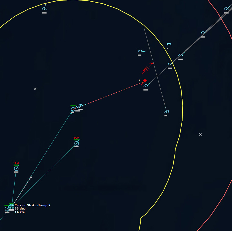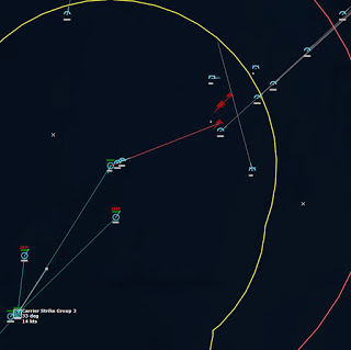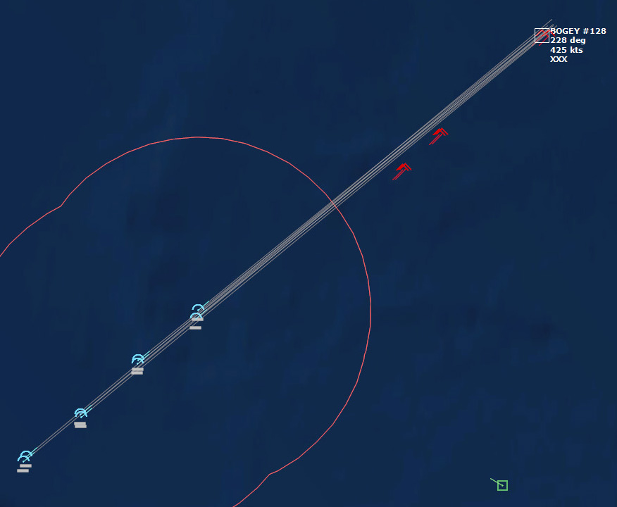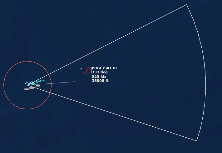 The last Bogey is eliminated153340Z Splash Three. Everyone breathes a sigh of relief.162037Z A Bogey is detected, and then another, but both are heading NW. This could be another raid. The CAP is diverted to intercept. Both contacts at 425kts.