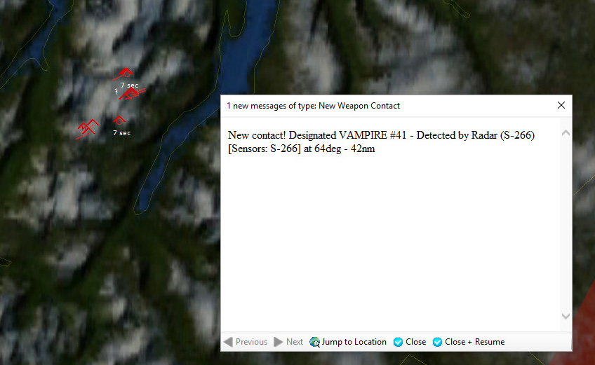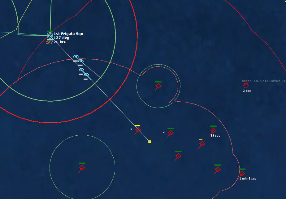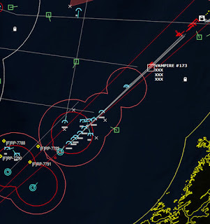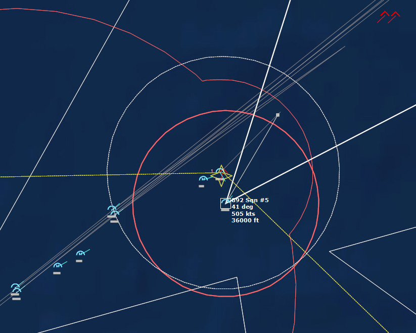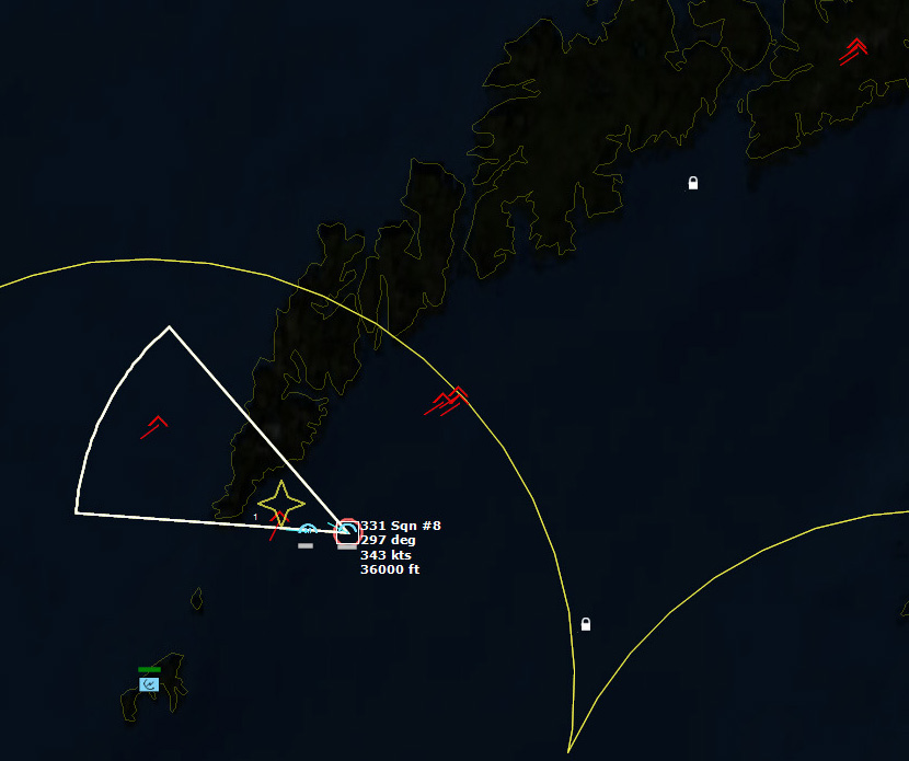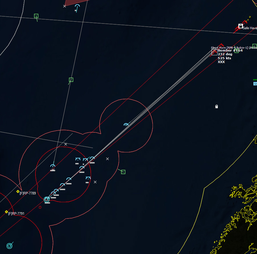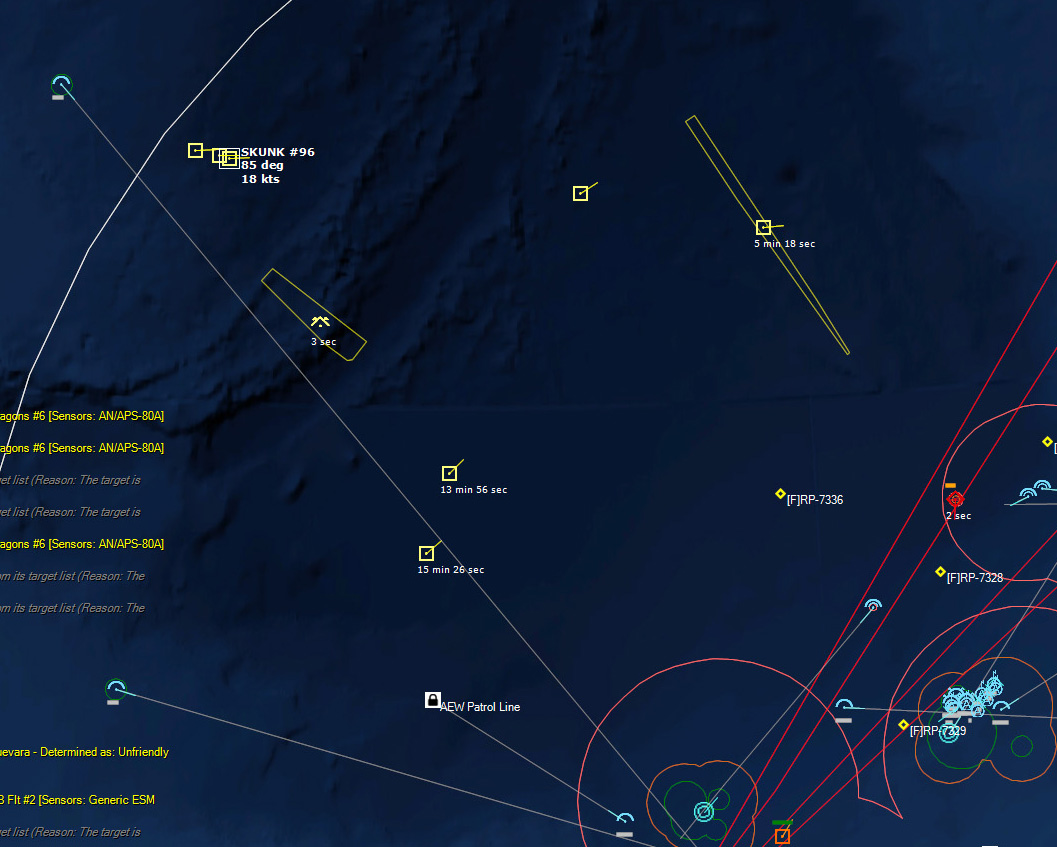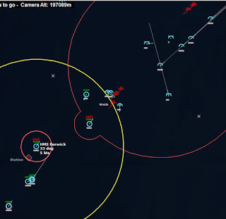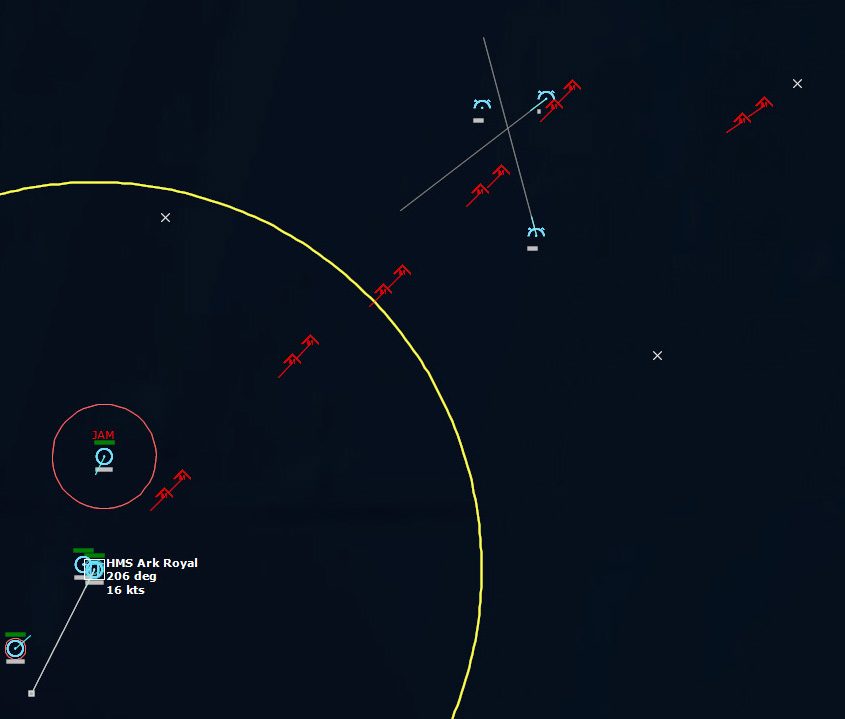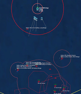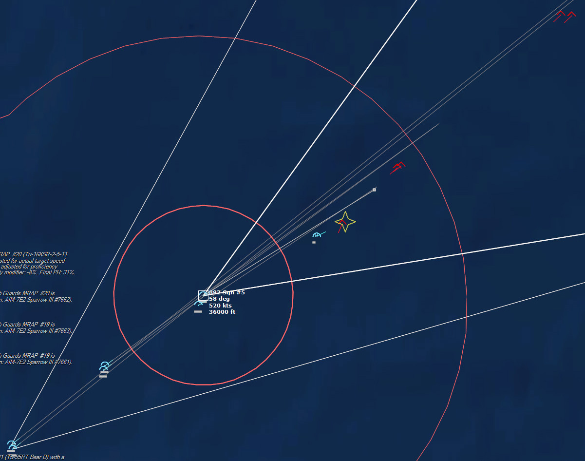 The last Bogey is eliminated153340Z Splash Three. Everyone breathes a sigh of relief.162037Z A Bogey is detected, and then another, but both are heading NW. This could be another raid. The CAP is diverted to intercept. Both contacts at 425kts.