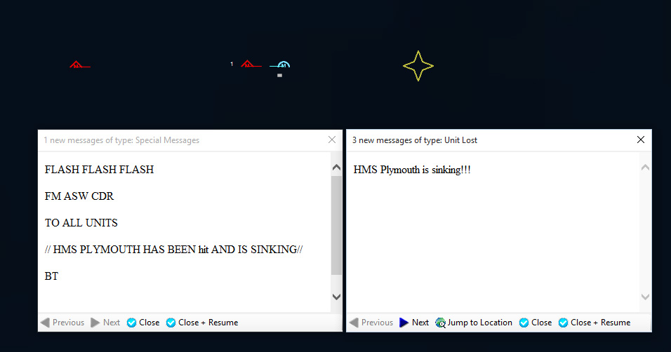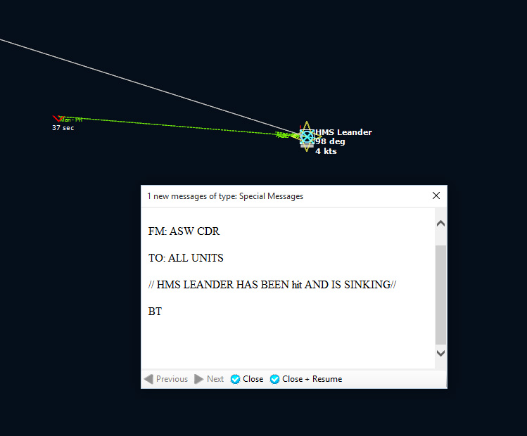200836Z The first torpedo misses...the second hits, and Devonshire sinks. I dispatch all my airborne choppers to the area. Not too pleased about this.