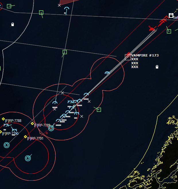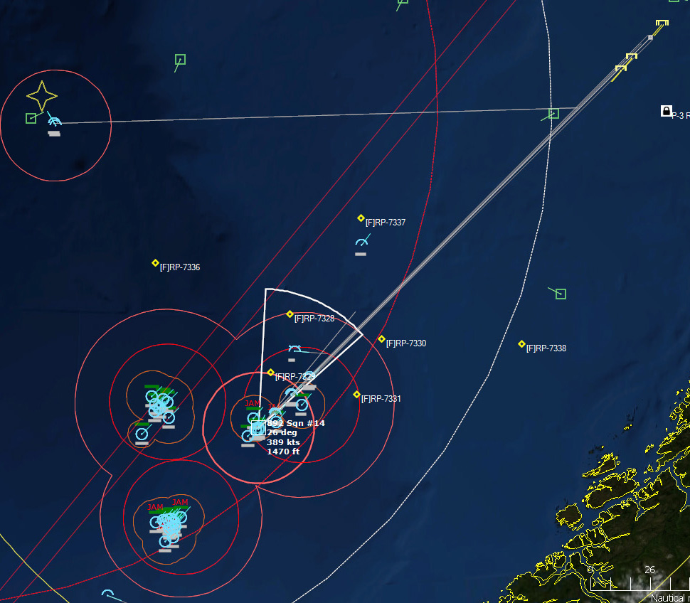 152054Z Bogey detected, this time heading SW towards the Narvik region. The CAP is diverted to intercept. Speed 525 kts. More F-4s are launched as the raid count increases to three. Could they be going after Bardufoss like they did with Bodo? Two of the aircraft are at 525 kts. Fitters? Or are they Tu-16KSR-2-5-11 Badger G Mods? The last is 425 kts, probably a Badger.