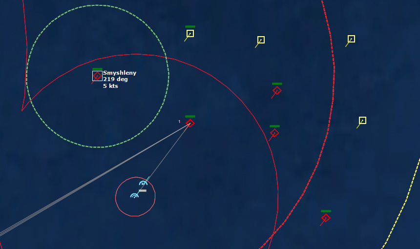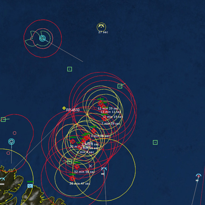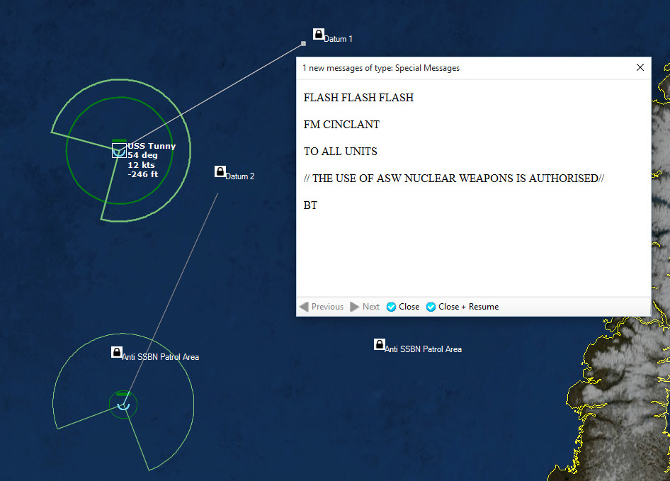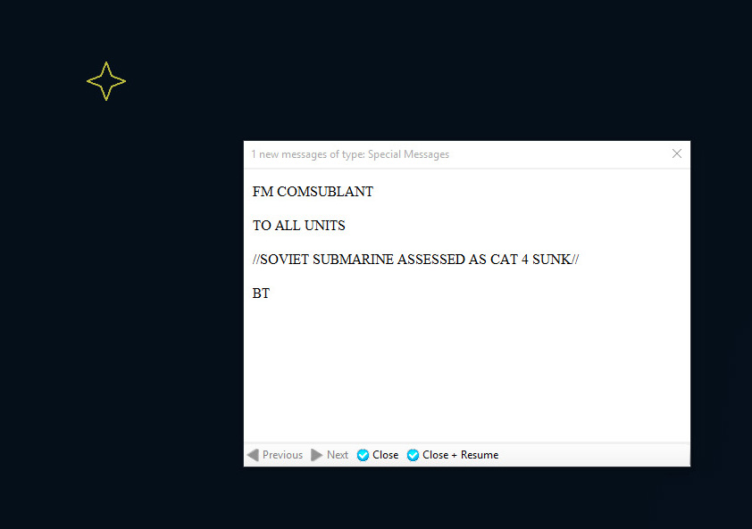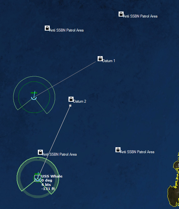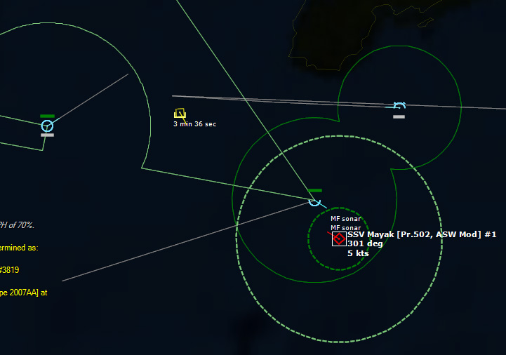 Gameplay Tip: NATO's underwater surveillance network (SOSUS) will rapidly flood you with a large number of underwater contacts, cluttering your map. Don't panic! Not all of them are enemy submarines. Give the SOSUS operators a little time to start identifying neutrals, biological etc. The colour of these contacts will turn green. You can use this time to start arranging your air patrols, give orders to your forces etc. Once you begin having positive classifications of "greens", filter them out right click on each desired contact and select "Filter out". This will remove almost all visual information about the contact from the map except for its icon and thus allow you to focus on investigating and prosecuting the possible enemy submarines.
