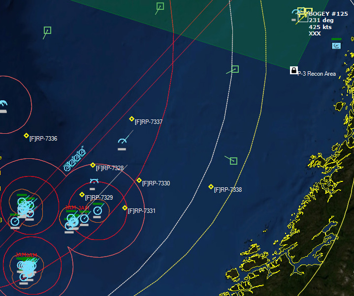 Patrol Area 2 was an irregular area to the east of that to the Norwegian coast. P-3s out of Andoya would patrol that, as would TU 603.01.01 and 02.